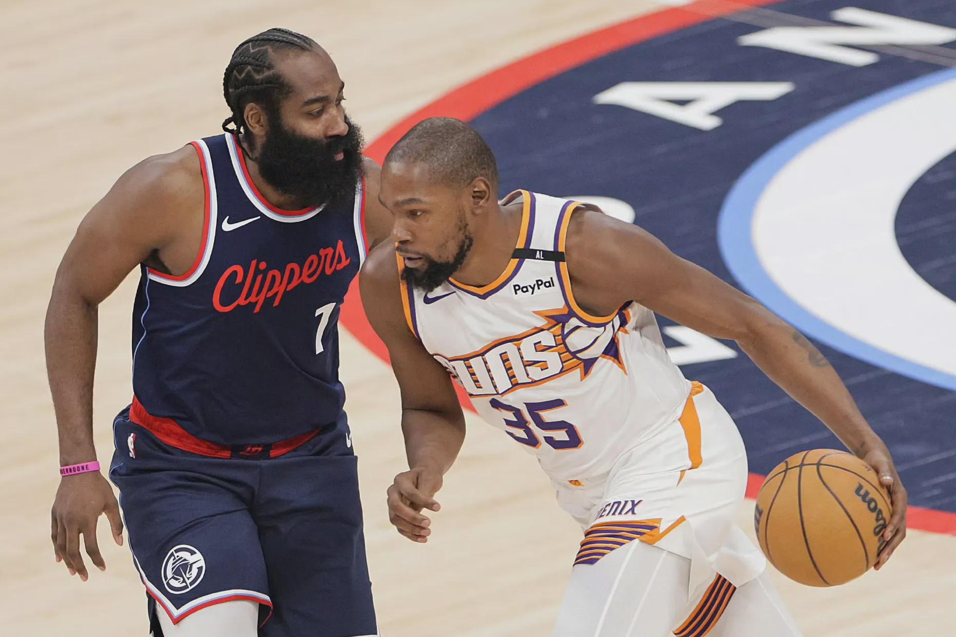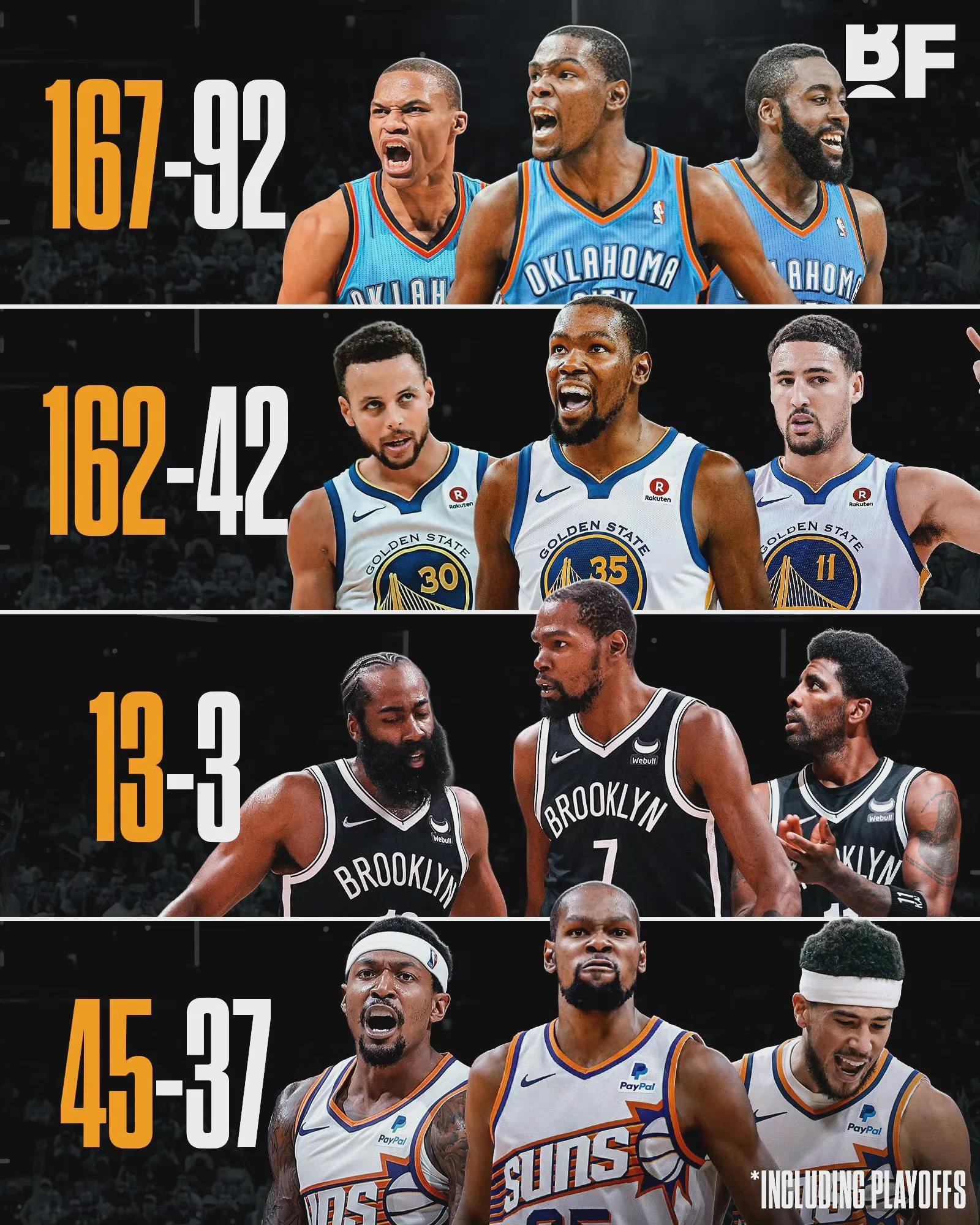 詹姆斯哈登自从离开布鲁克林篮网之后,再也没有搭档过好兄弟凯文杜兰特,如果洛杉矶快船能交易获得凯文杜兰特的话,两人有机会再续前缘,一起争夺总冠军。
